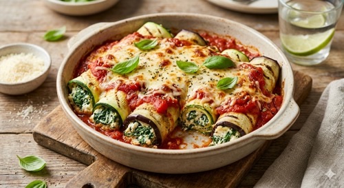 정통 카넬로니는 커다란 원통형 파스타 면 속에 속 재료를 채우지만, 다이어트 버전에서는 가지나 애호박(Zucchini)을 얇고 길게 슬라이스하여 면의 역할을 대신합니다.