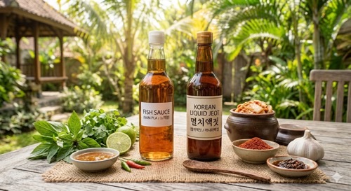 요리의 주인공이 식재료 본연의 신선함이라면 피쉬소스를, 오랜 시간 끓여낸 깊은 풍미가 핵심이라면 한국 액젓을 선택하세요. 한 끗 차이로 요리의 국적이 바뀝니다.