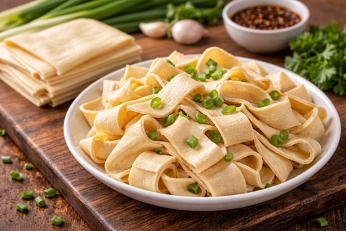 포두부는 두부를 아주 얇게 압착해 만든 것으로, 칼로 썰기만 하면 즉석에서 '글루텐 프리 넓은 면'이 탄생합니다.