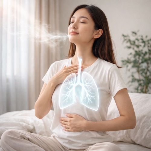 * 방법: 코로 깊게 들이마시고 입으로 천천히 내뱉는 복식 호흡(횡격막 호흡)을 하루에 5번만 의식적으로 반복해 보세요.